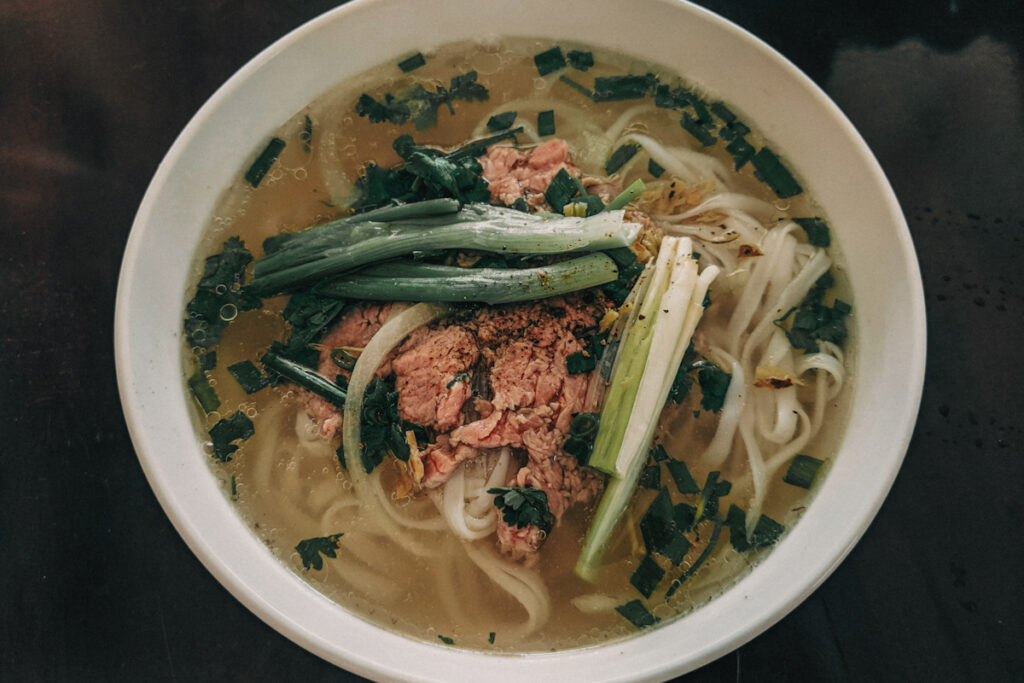- Hủ Tiếu Nam Vang: Hierbei handelt es sich um eine milde Reisnudelsuppe mit Schweinefleisch, Garnelen und Kräutern, die vor allem im Süden verbreitet ist.
